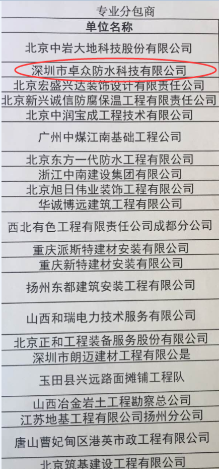 深圳市卓眾防水科技有限公司已經符合分供方五顆星的標準。